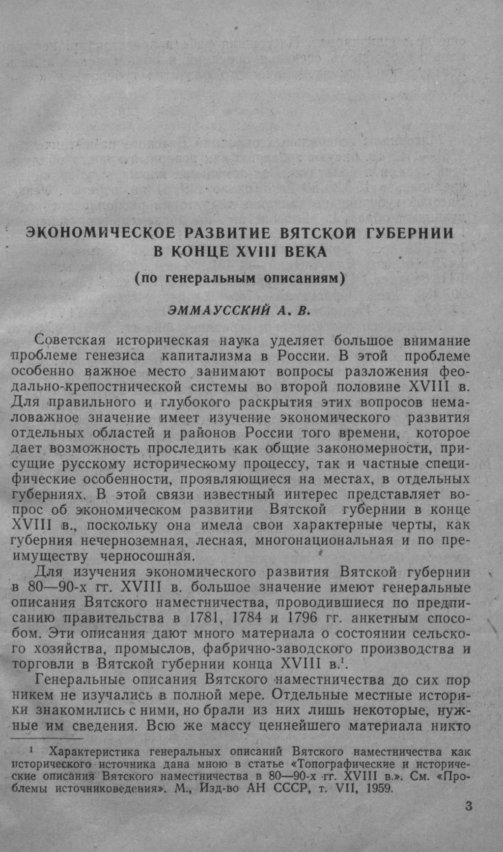 Экономическое развитие Вятской губернии в конце XVIII века (Анатолий Эммаусский)
