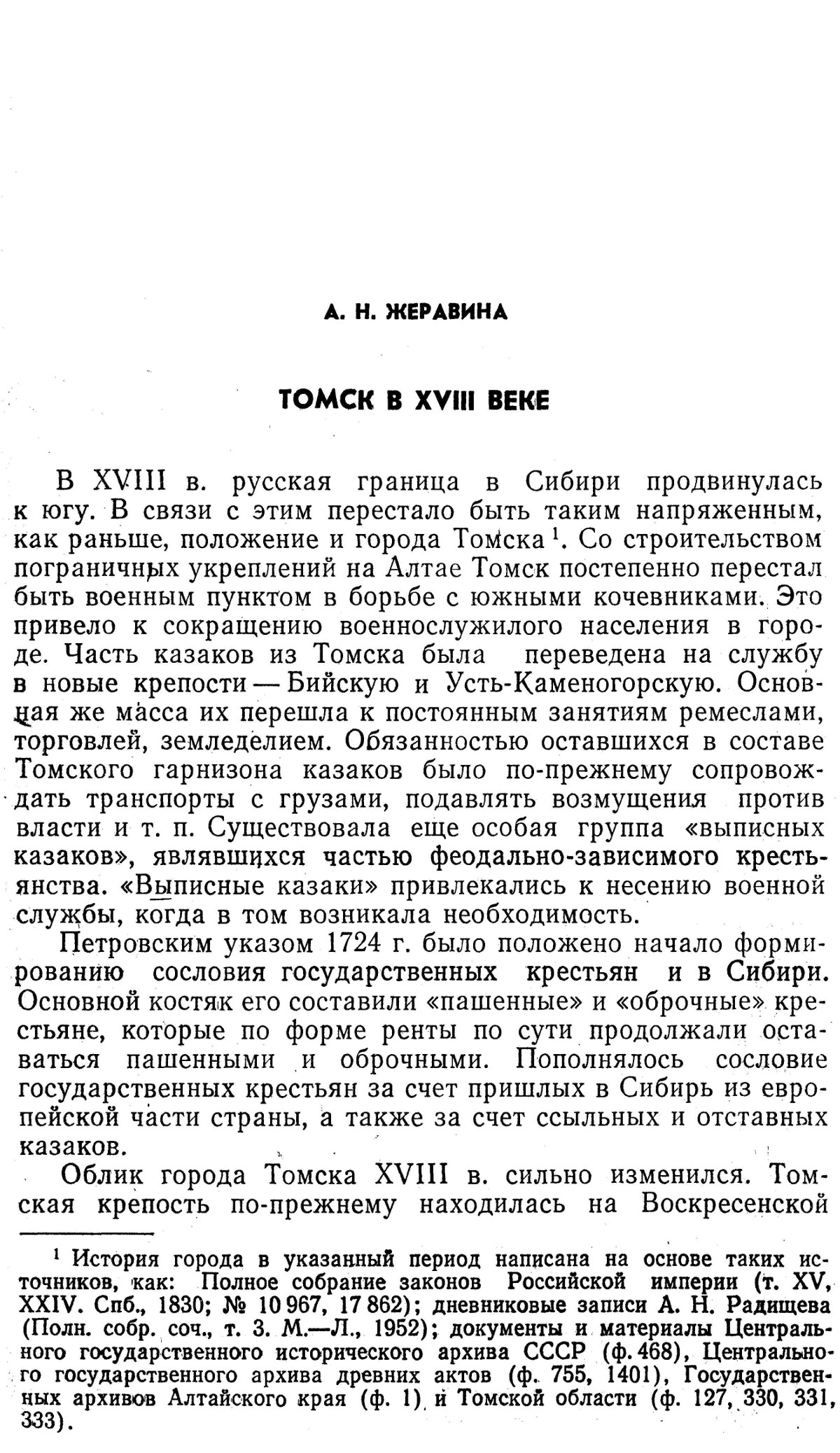 Жеравина, А.Н. Томск в XVIII веке