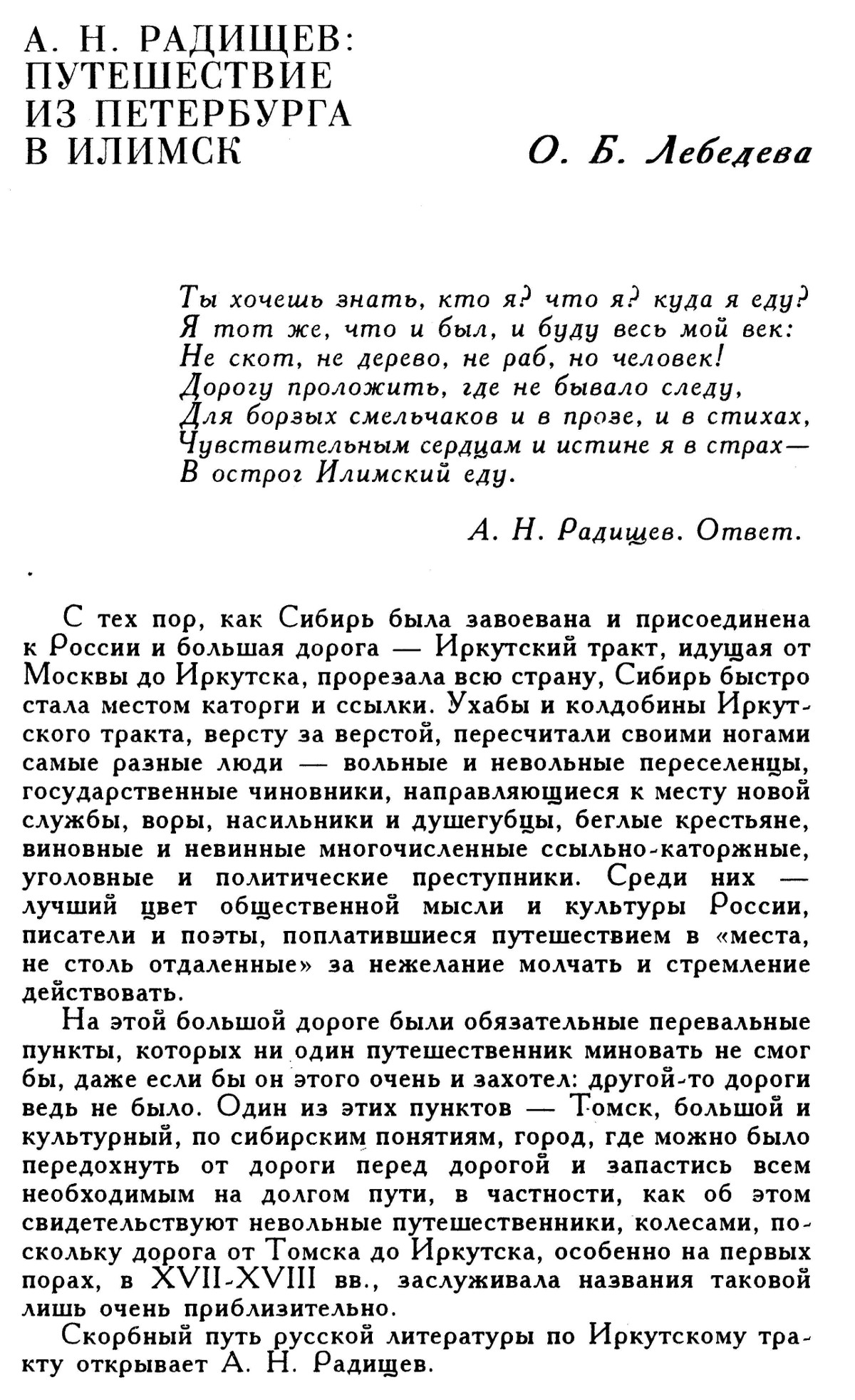 Лебедева, О.Б. А.Н. Радищев : путешествие из Петербурга в Илимск