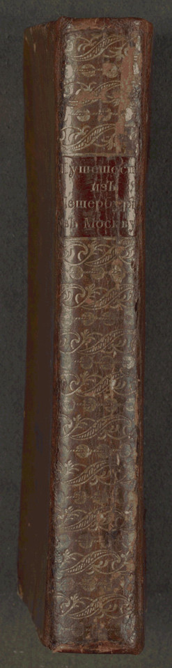 Вот как описывает этот раритет выдающийся музеевед и исследователь судьбы первого издания главной книги А.Н. Радищева Д.Н. Анучин: «Экземпляр этот переплетен в (очевидно, современный) коричневый кожаный переплет, украшенный золотыми завитками исключительно на корешке, тогда как самый переплет без всяких украшений. Обрез листов красный. Следов принадлежности прежнему владельцу в книге не имеется, равно как и вообще каких-либо рукописных отметок» [6, с. 309-310].